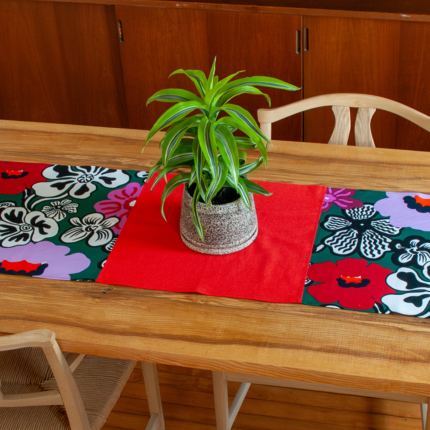 Cotton and linen table runner handmade in Maine and Vermont. Natural fibers. Original design. Sustainably made.