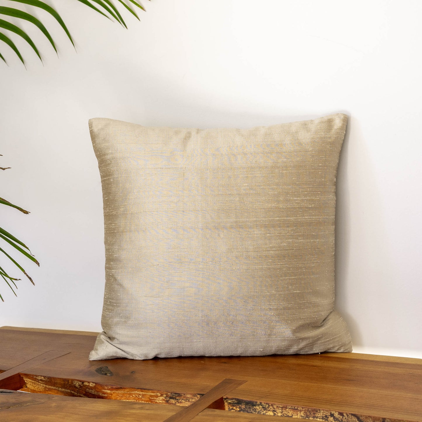 Thai dupioni silk, front and back, with cotton lining and invisible zipper. Handmade in Maine and Vermont.