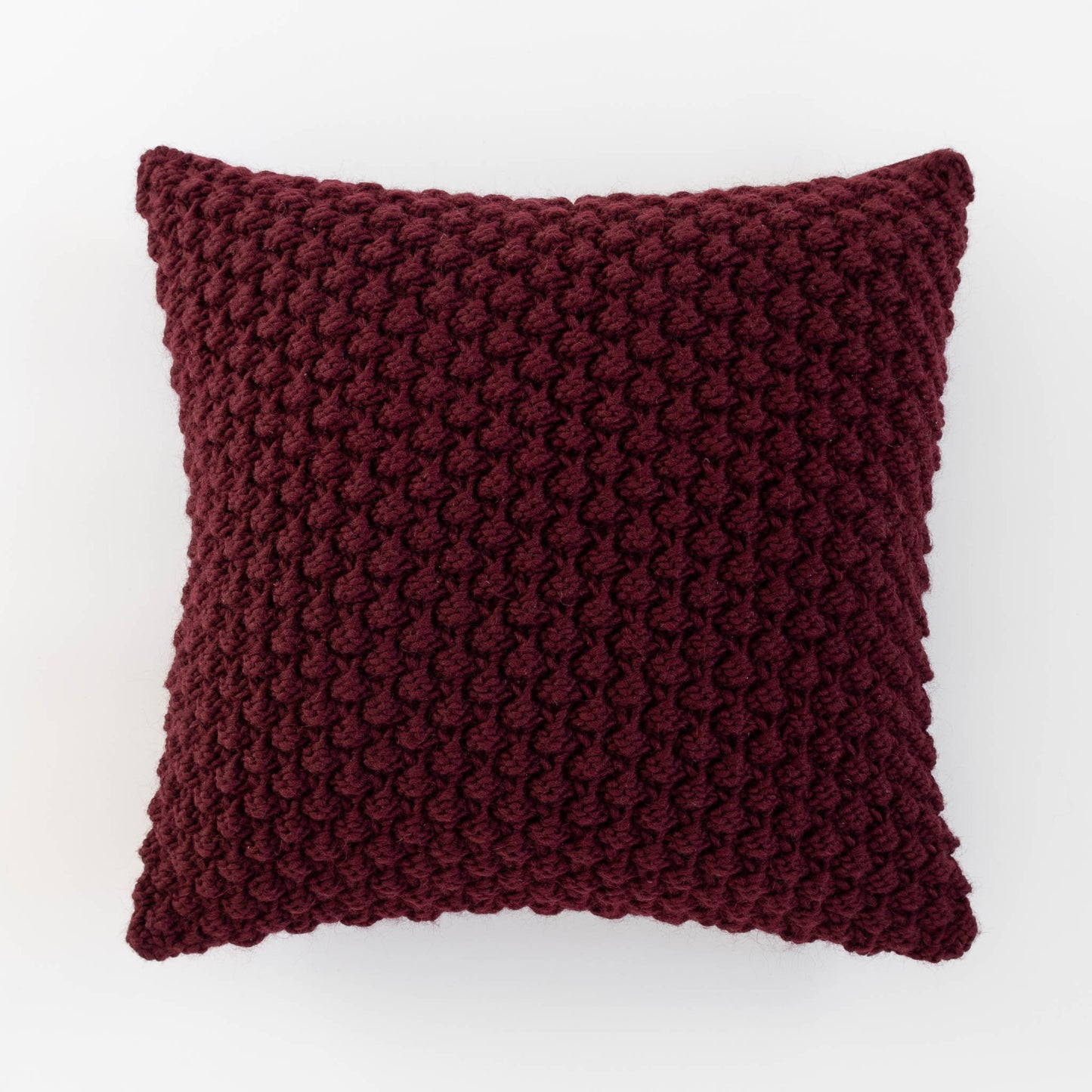 Wool throw pillow cover hand-knit and sewn in Maine and Vermont. Domestic yarn (85% wool/15% mohair) with New England worsted wool backing. Cotton lining and invisible zipper.