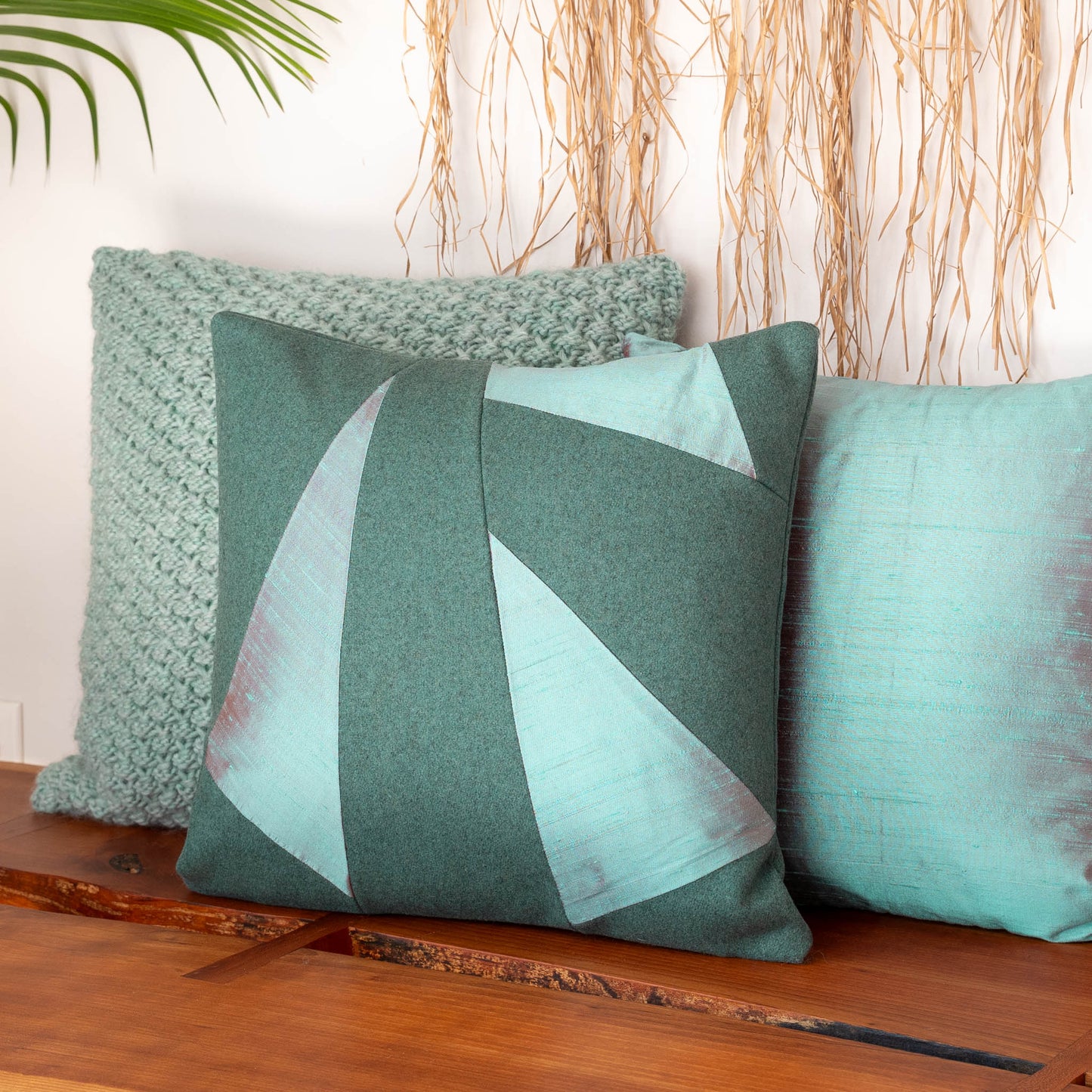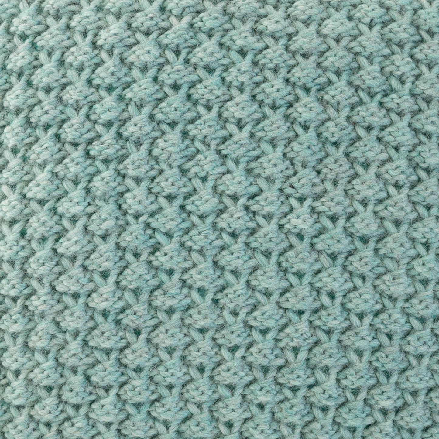 Wool throw pillow cover hand-knit and sewn in Maine and Vermont. Domestic yarn (85% wool/15% mohair) with New England worsted wool backing. Cotton lining and invisible zipper.