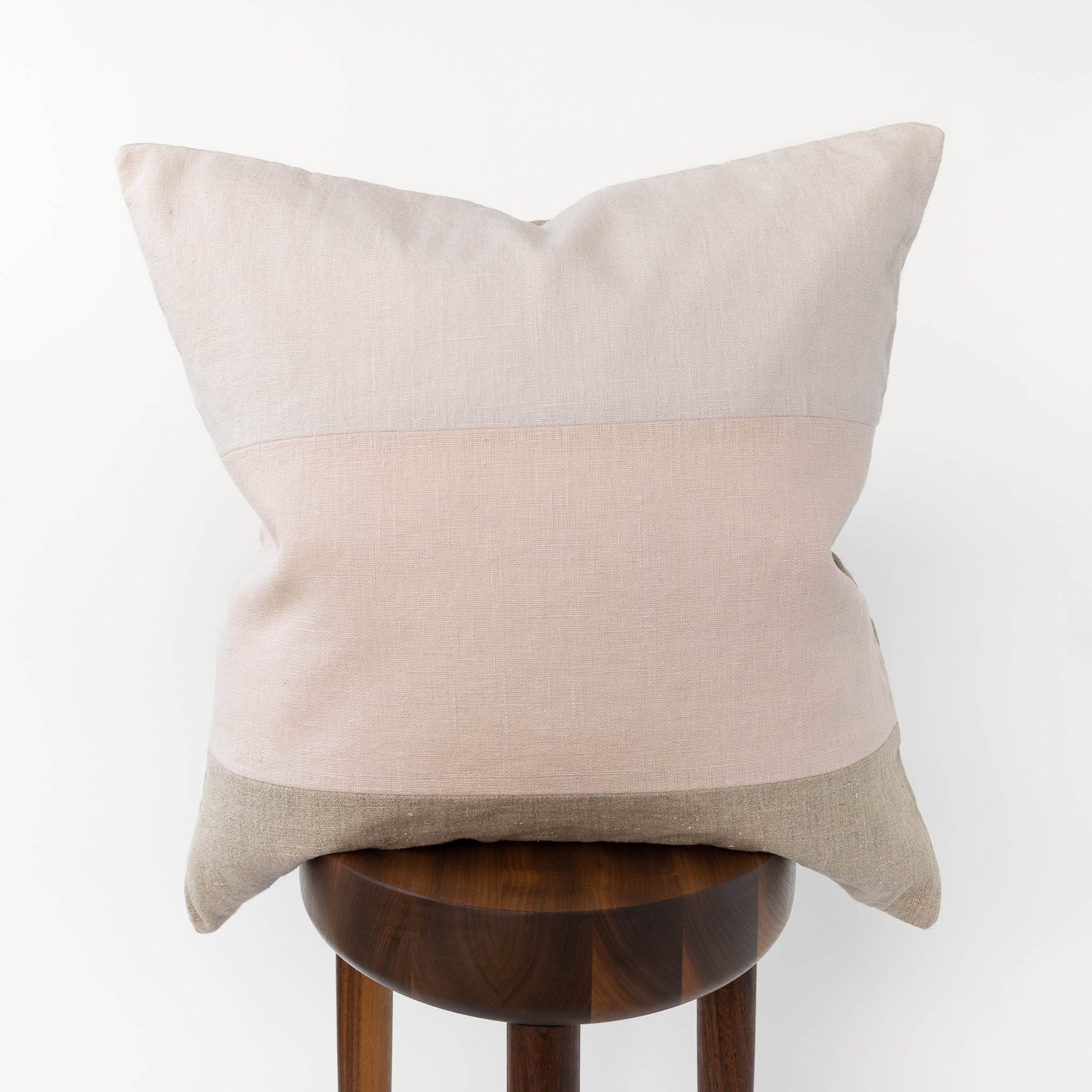 European linen, front and back, with cotton lining and invisible zipper. Hand-cut and pieced original designs made in Maine and Vermont.