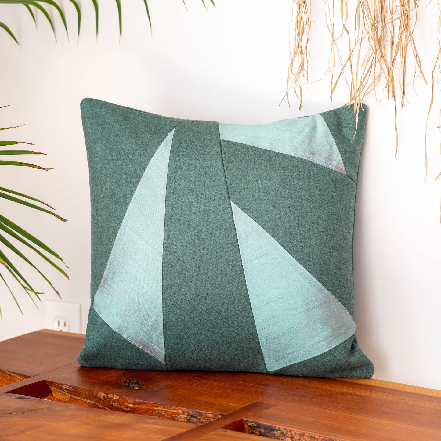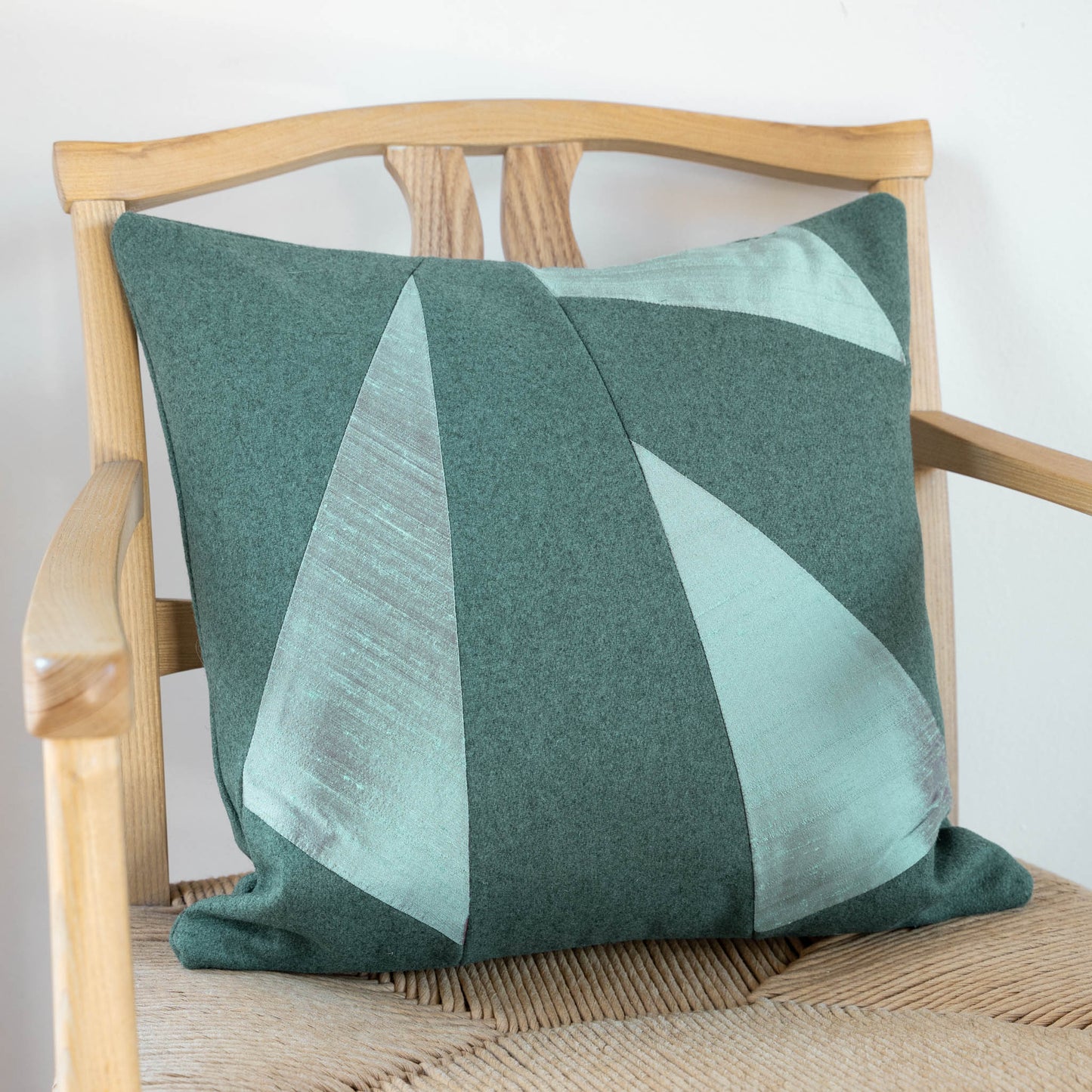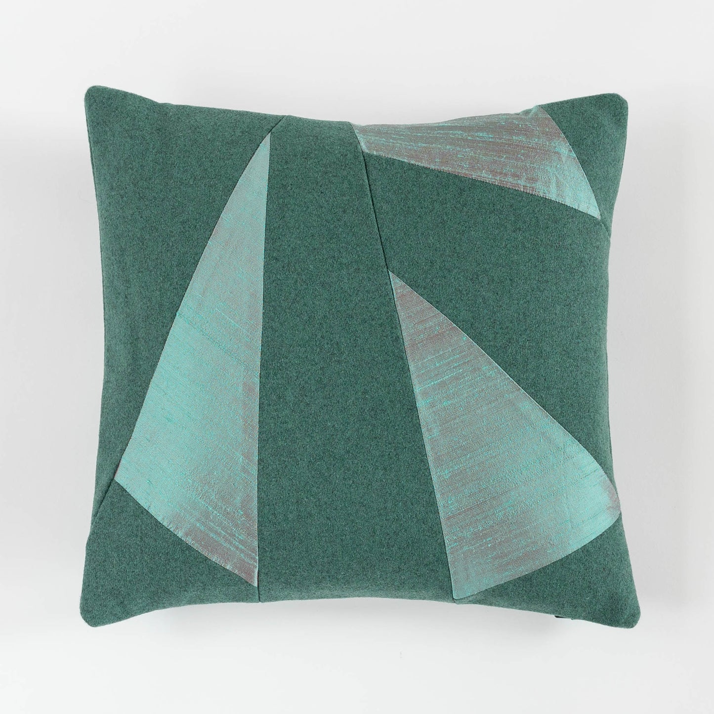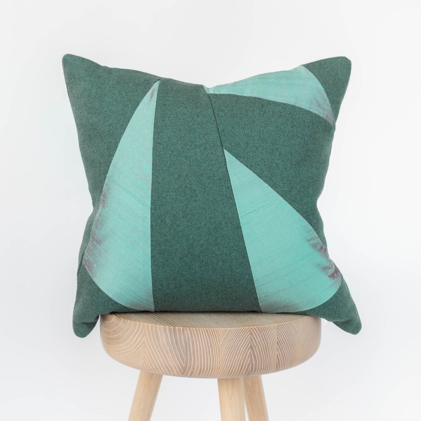 New England worsted wool and Thai Dupioni silk, with cotton lining and invisible zipper. Hand-cut and pieced original designs made in Maine and Vermont.